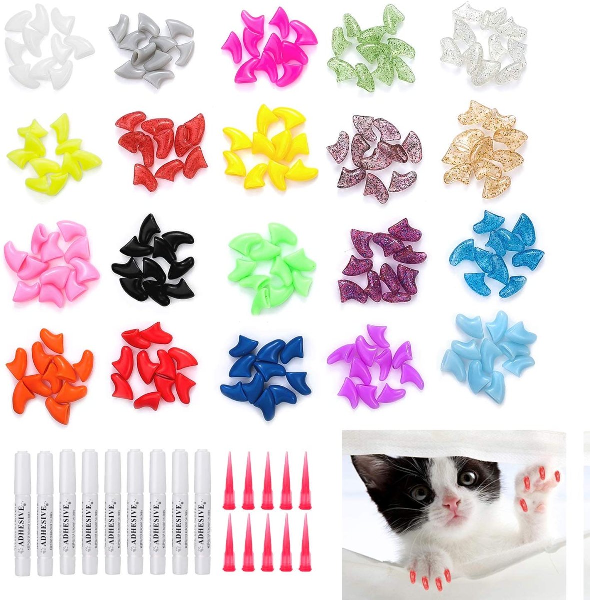 200 Pezzi Gatti Copertura per Unghie Protezione per Artigli per Cane Gatto,Morbidi Colorati Cappucci Unghie Gattini Copri per Gatti Tappi con Adesivi Applicatori con Istruzioni per Animali Domestici