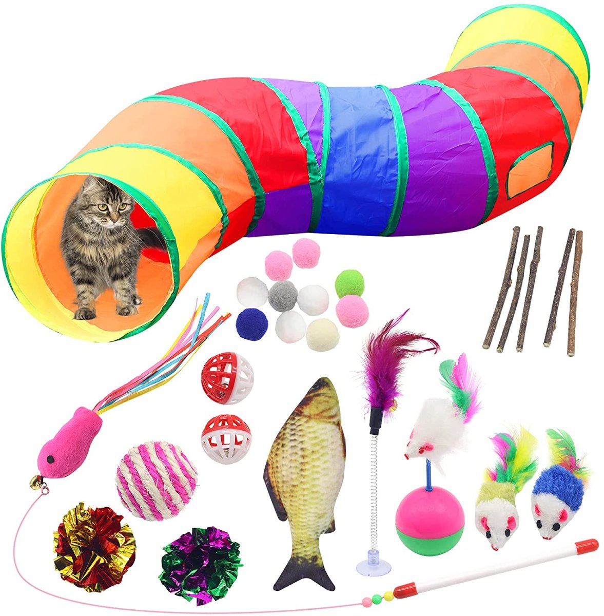 28 Pezzi Giocattoli per Gatti COYICOLI Giocattoli Interattivi Giochi Gatto kit,Erba Gatta,Palla,Campana,Piuma di Topo,Tunnel per Gatti