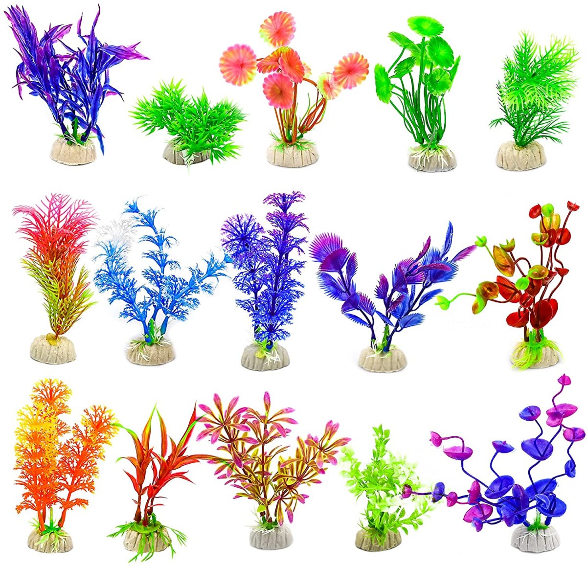15 Pz Piante da Acquario in Plastica Attraenti, Piante Finte Acquario Realistiche, Piante Artificiali Sintetiche Colore per Acquario, Acquario Piante Fish Tank Decorazioni per Tutti i Pesci